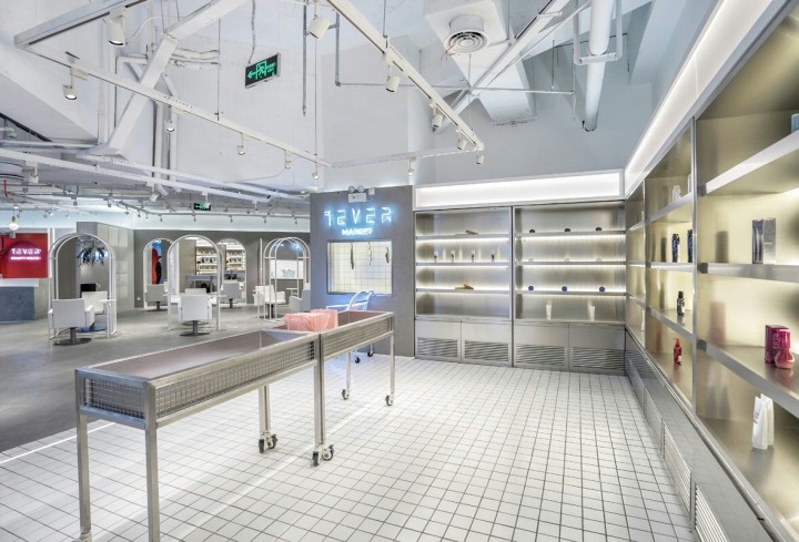 店铺设计 区别于传统的美容院设计,以独特的设计风格和设计理念让人耳目一新。时尚、动态、前卫的元素与品牌文化结合起来,在设计这个沙龙时为顾客创造良好的客户体验。