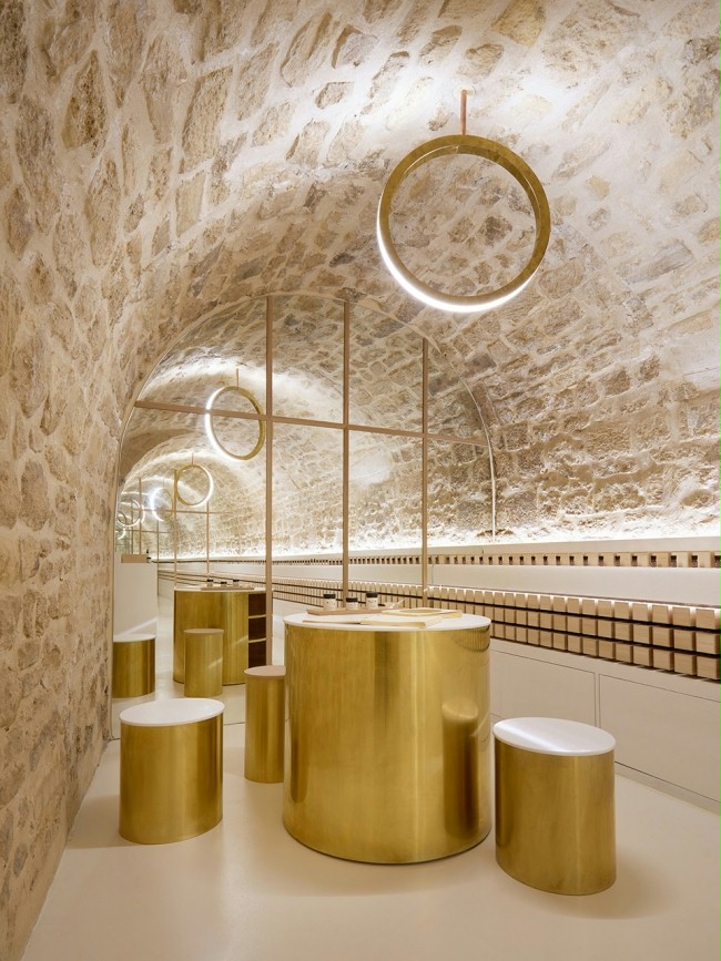 设计理念/这是一个新美容品牌而设计的精品店。设计师保留了大部分的原始结构,增设了不同的隔断来满足空间需要。圆弧形的隔断创造了更圆润的空间。圆弧内部采用白色饰面,为客人营造一个纯净的空间。客人不能直接进入提供各种服务的房间,而是需要沿着弯曲的小路通往自己的目的地。给客户带来一种神秘的期待感。亮黄铜饰面,为空间带来温暖的多方向光反射,提供了一个优雅又特别的空间。
